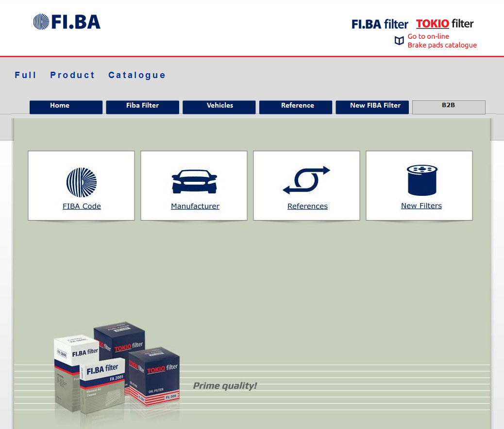 Potpuni katalog proizvoda je pretraživač “FI.BA“ filtera i pločica, kao i tokyo programa. Sve pozicije iz naše ponude može prevesti preko referentnih brojeva većine poznatih svetskih proizvođača. Do željenog filtera možete doći preko uporednog ili originalnog broja filtera. Takođe, potreban artikal možete pronaći i po modelu i tipu vozila. Za FI.BA online katalog kliknite ovde... |